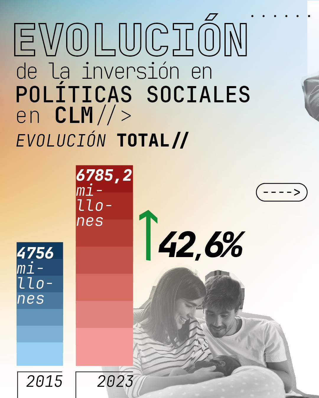 👉Es una de nuestras señas de identidad. La inversión en políticas sociales en CLM desde que gobierna Emiliano García-Page ha aumentado 43%.🏥Sanidad: +40%👩🏫Educación +50👩🦼Bienestar Social +67 ✅No solo recuperamos lo perdido en su día con el PP, sino que seguimos mejorando la calidad de vida de nuestra ciudadanía.